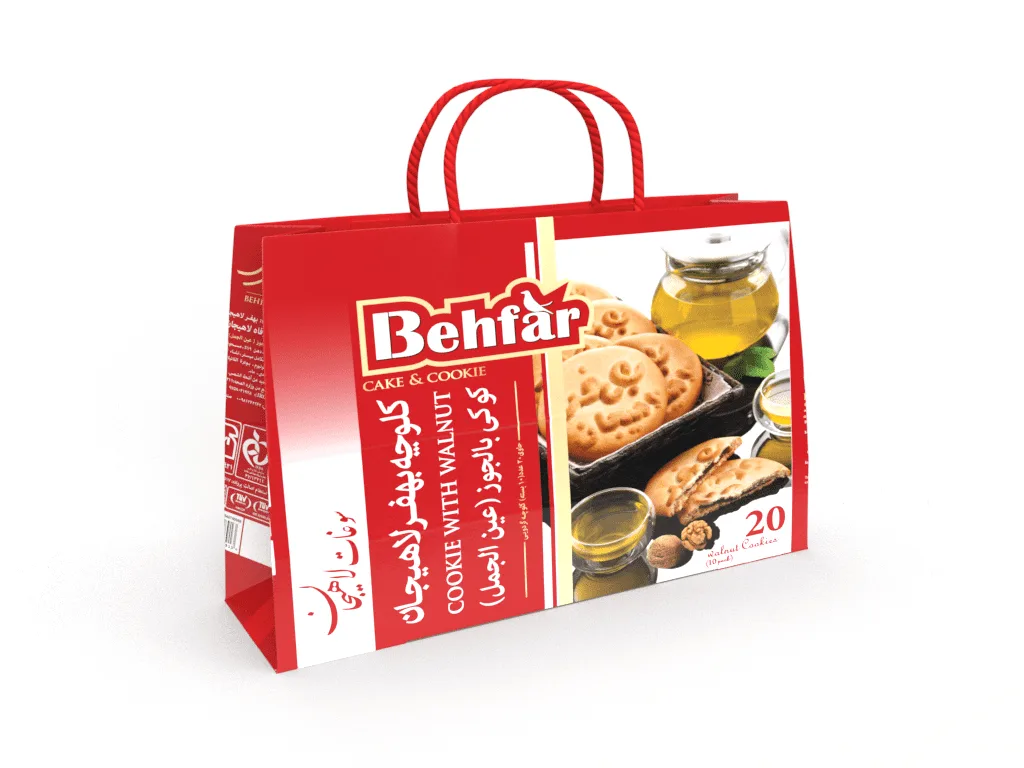 کلوچه با مغزی گردویی بهفر لاهیجان محصولی از شرکت تیمن (چای رفاه لاهیجان)؛ اولین تولید کننده کیک و کلوچه حاوی چای سبز در ایران.